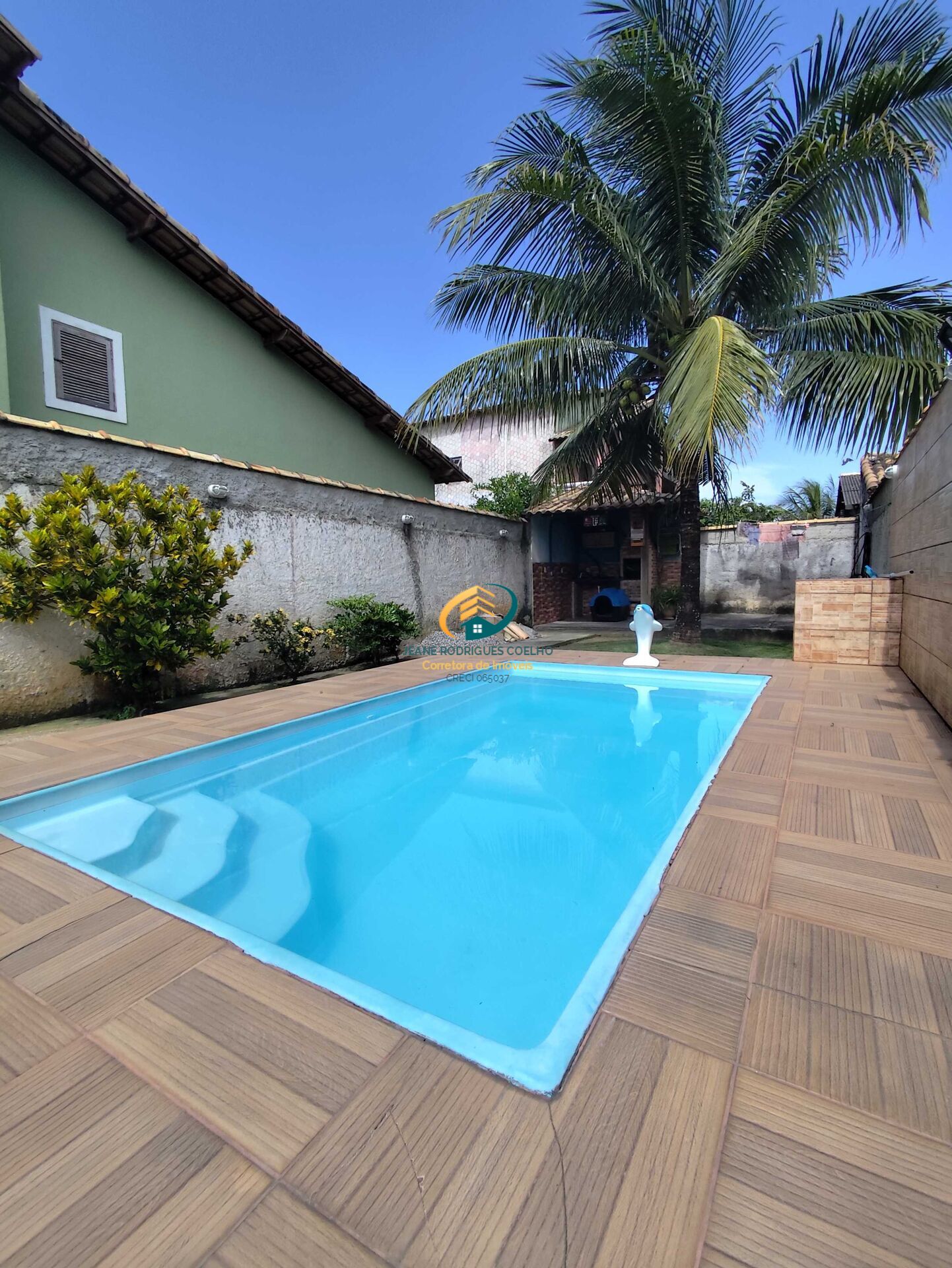 Sendo 2 quartos ( uma suíte), sala, cozinha, área serviço, banheiro Social, garagem coberta, churrasqueira e piscina.