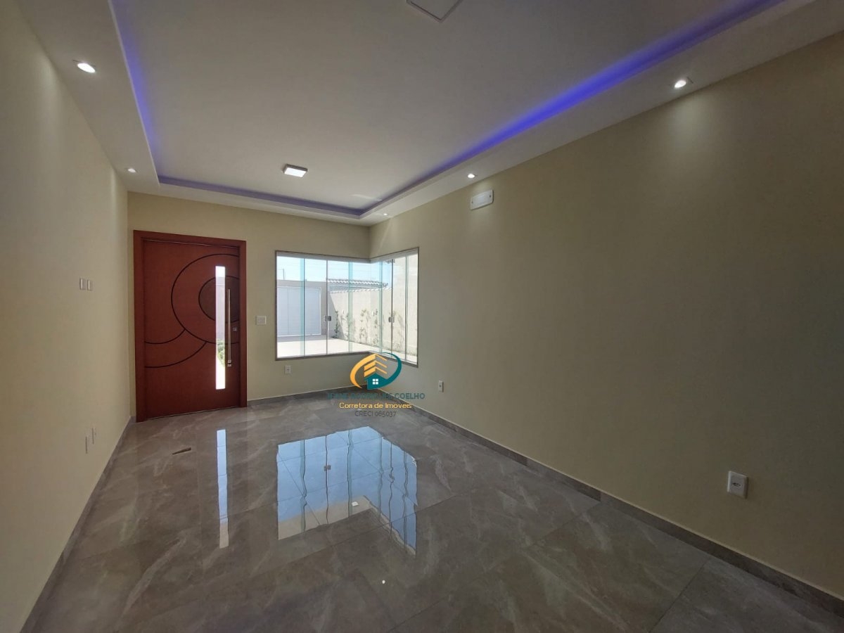 A casa possui 3 amplos quartos sendo 1 suíte máster com banheira de hidromassagem, sala grande com iluminação indireta e ampla janela dando bastante claridade e frescor ao ambiente, cozinha espaçosa com pia em L e calha úmida, banheiro social totalmente moderno com pia esculpida e nicho com iluminação deled. Área gourmet integrada ,churrasqueira com grill elétrico e banheiro externo.